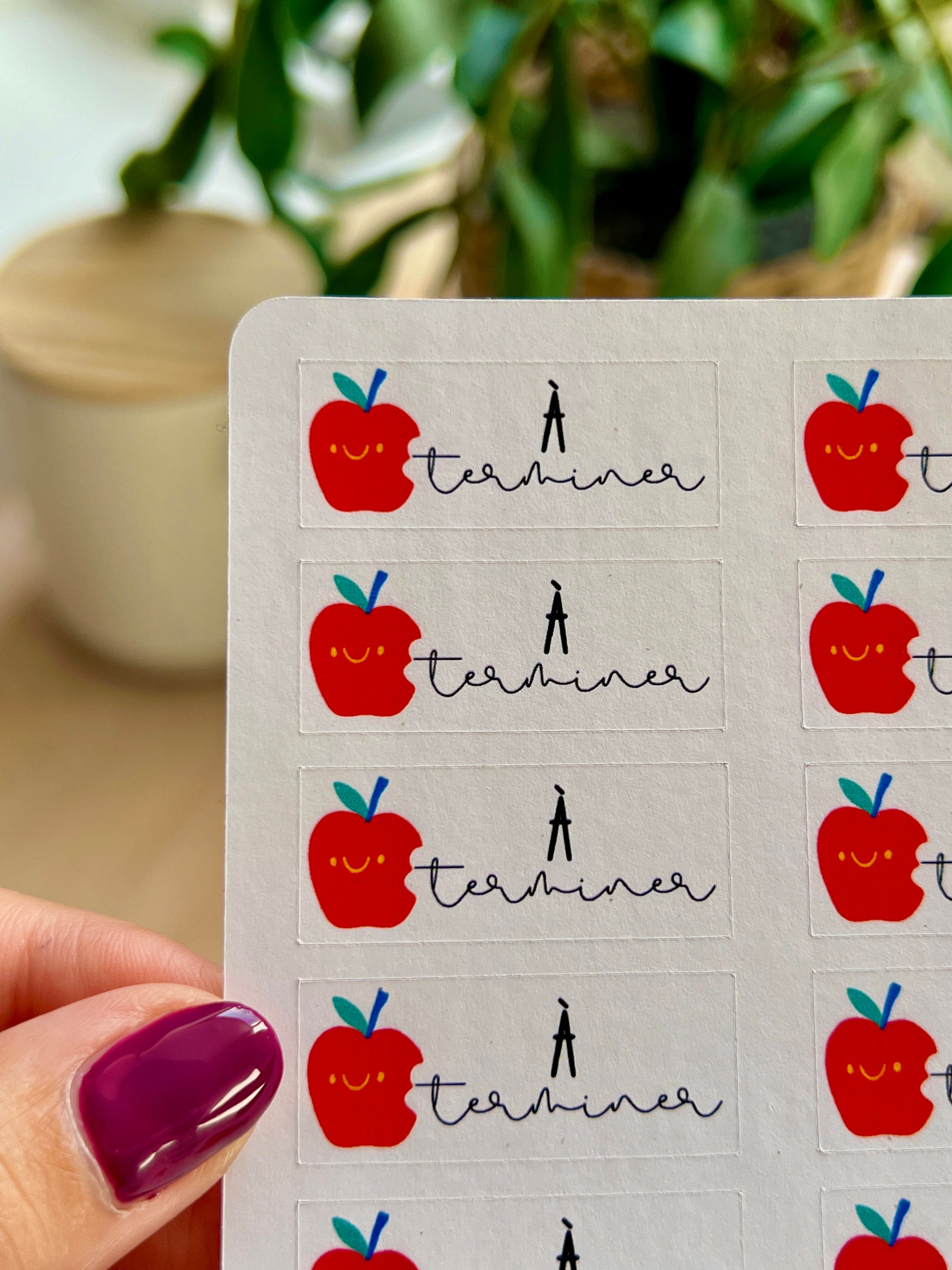 Cette planche est composée de 24 autocollants rectangulaires d'environ 4 cm de longueur. Elle est idéale pour rappeler aux élèves les feuilles d'exercices à terminer.