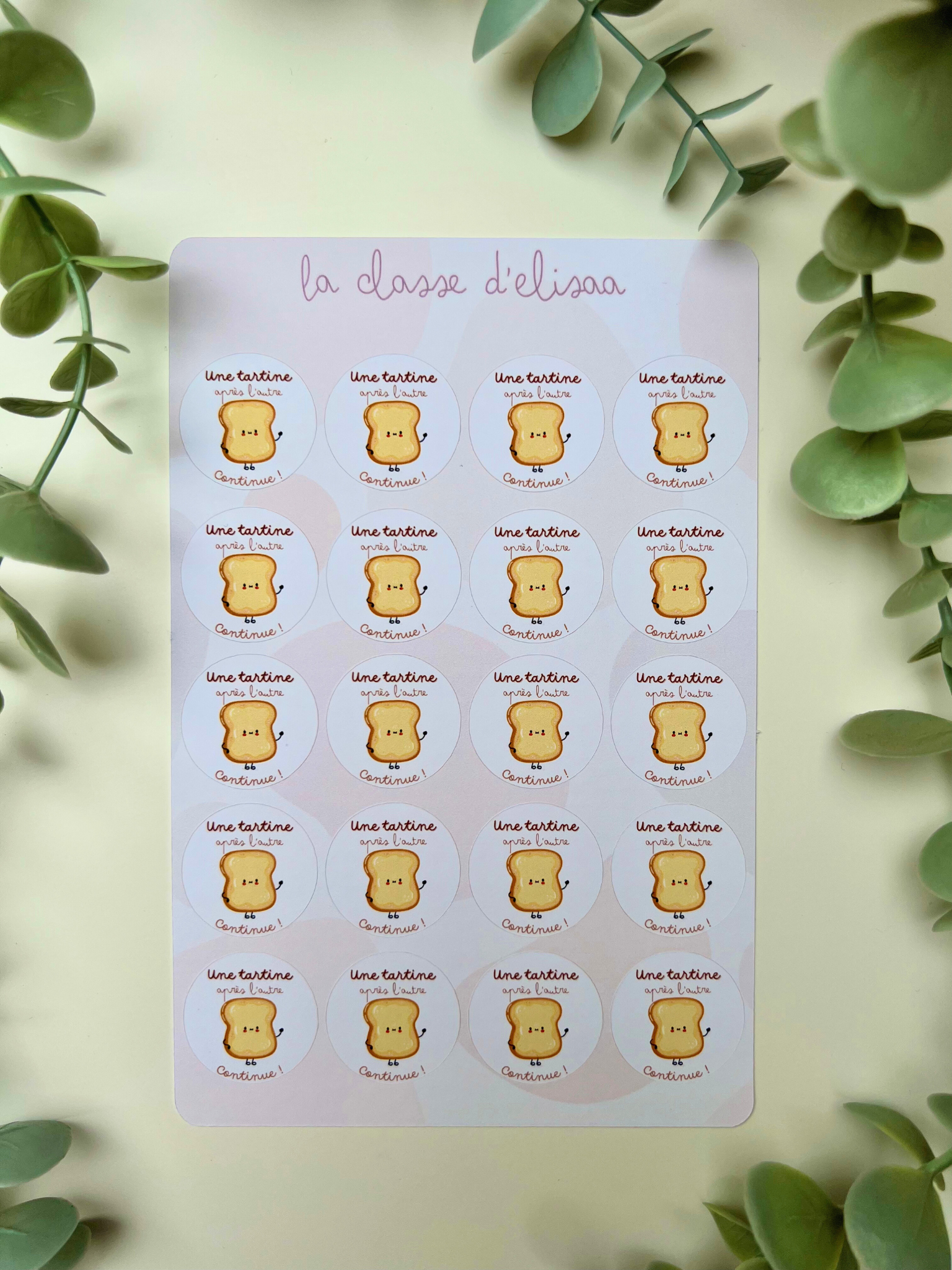 Planche de stickers "Une tartine après l'autre, continue"